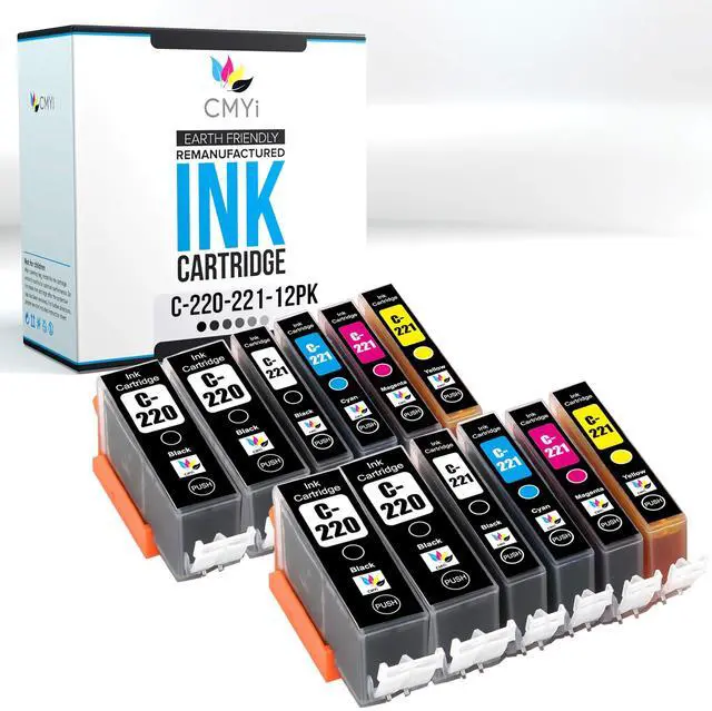 Package Contents: 4x CMYi PGI-220 Pigment Black, 2x CLI-221 Black, 2x CLI-221 Cyan, 2x CLI-221 Magenta, 2x CLI-221 Yellow ink cartridge (This is not an OEM product)