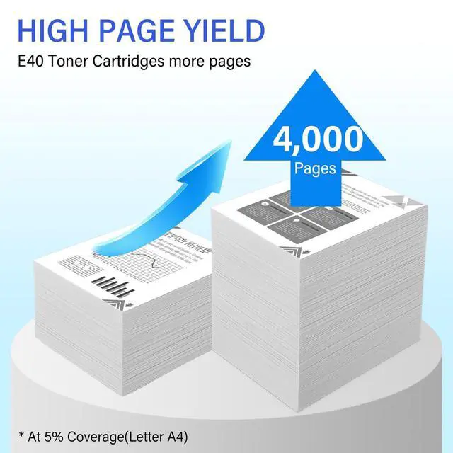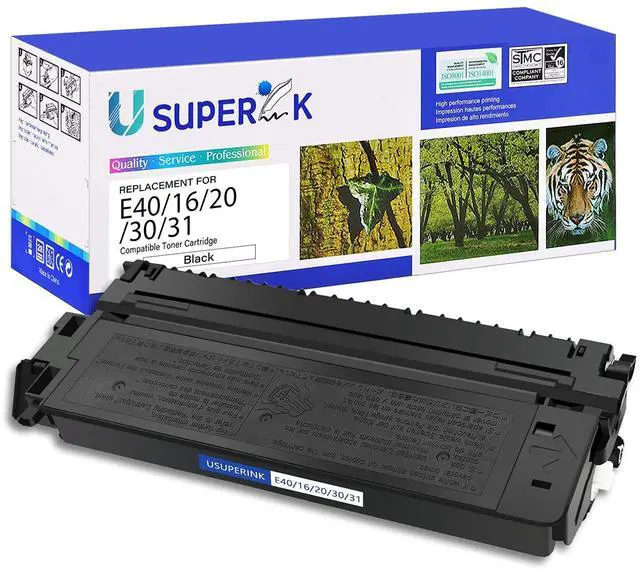 Package Contents: 1 x E40 Black Toner Cartridge, 1 x User Guide. USUPERINK strikes for every customer's satisfaction. ^^ Estimated yield to 4, 000 pages per E40 toner cartridge (under condition of 5% coverage in A4 paper). Meet in the requirement of ISO/IEC 19752. ^^ Compatible for