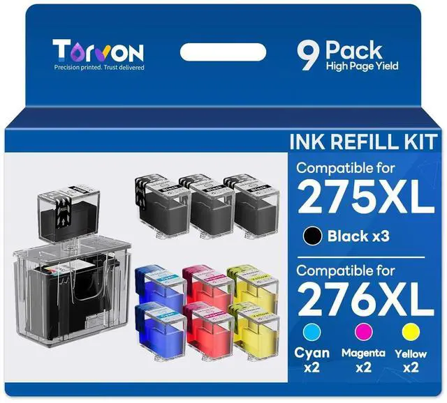 Automatic Ink Filling: One ink refill kit is equivalent to 3 sets of cartridges. Original cartridges can be refilled 6-9 times, compatible cartridges can be refilled 3-5 times ^^ This 275XL 276XL ink refill kit features advanced clog-resistant ink for stable, high-performance printing