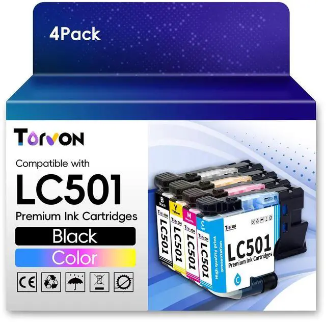 Torvon 4 pack replacement for lc501 ink cartridges for brother printer includes: 1 x LC501 black ink, 1 x LC501 cyan ink, 1 x LC501 magenta ink, 1 x LC501 yellow ink cartridges ^^ Torvon replacement for lc501 ink compatible with Brother MFC-J1260DW MFC-J1360DW MFC-J1410DW Printers ^^