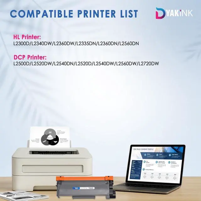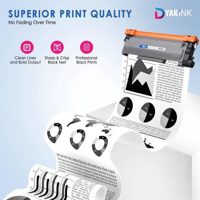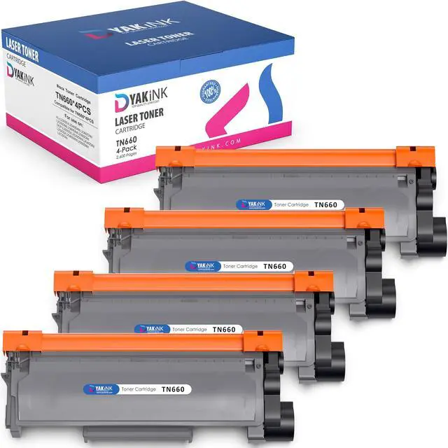 DYAK INK TN660 High-Yield Black Toner Cartridge 4 PackGet reliable, professional-quality printing with the DYAK INK TN660 toner cartridge 4-pack. Each cartridge delivers up to 2, 600 pages, giving you a total of ~10, 400 pages per pack. Perfect for offices, schools, and small businesses that need affordable and consistent black-and-white printing. These cartridges are designed for compatibility with a wide range of Brother printers. Installation is quick and easy, with no leaks or mess, ensuring smooth and dependable performance with every print job.