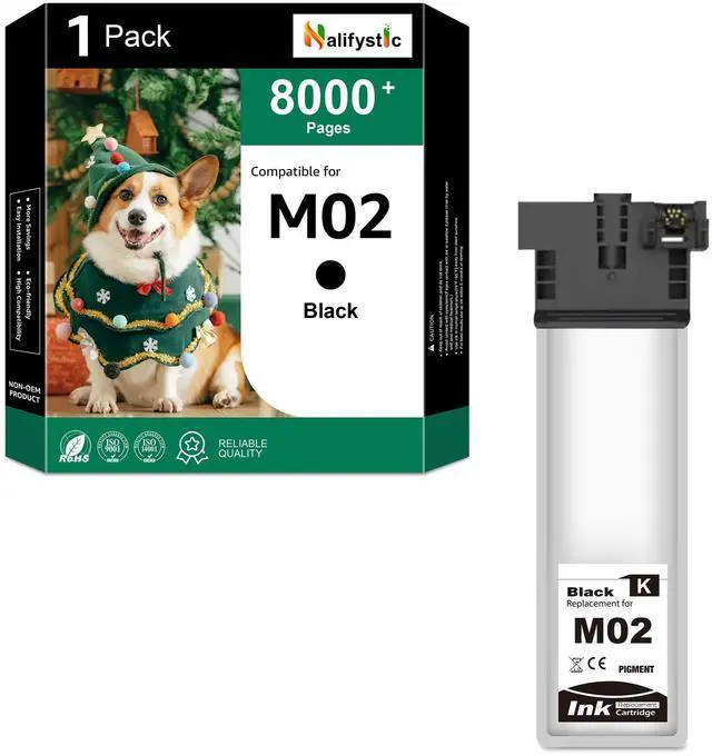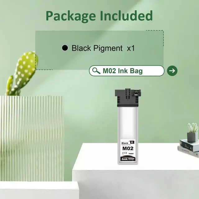 Remanufactured M02 Ink Cartridge Includes1 x M02120 black Ink cartridge. ^^ Compatible for Printer ModelRemanufactured M02 Ink Cartridges for WF-M5799 WF-M5299 Printers. ^^ Remanufactured M02 Approx. Page YieldThese remanufactured M02 cartridge replacements for M02120 each have up to 8, 000 pages and offer superior print performance and quality. ^^ Superior CompatibilityEach remanufactured M02 ink cartridge undergoes quality and functional tests before leaving the factory, ensuring the printing quality of the ink cartridge. Whether you print documents, presentations or charts, you will get reliable printing effect, just as if it won't damage the printer.