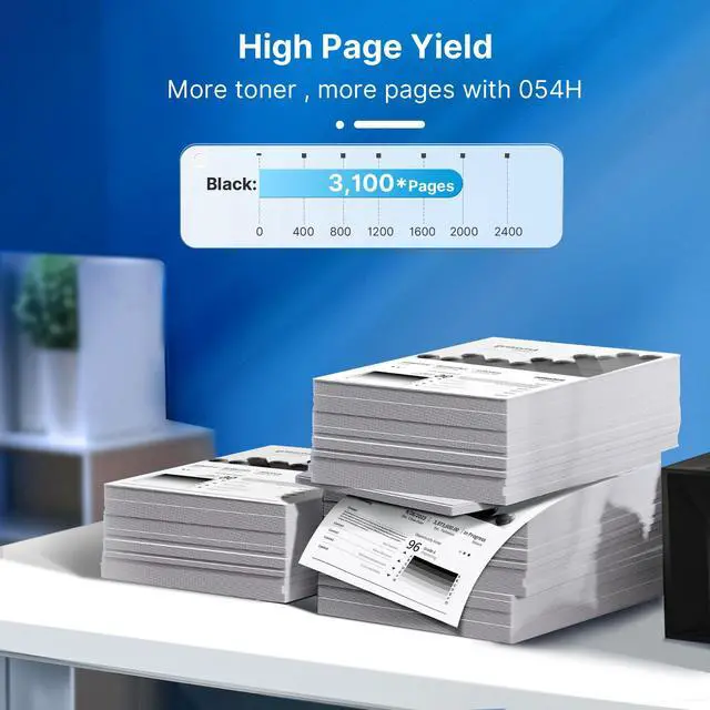 High Page Yield: Up to 3, 100 pages for per 054H Black toner, 6, 200 pages in total based on 5% coverage, Letter/A4, work with canon 054h toner cartridge set ^^
