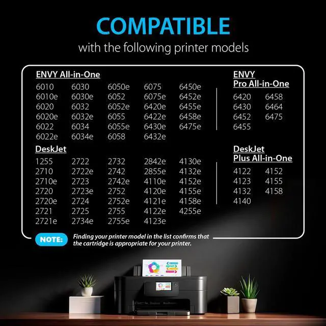 Smart Ink 67 ink cartridge for HP printers is compatible with HP ENVY All-in-One 6010, 6010e, 6020, 6020e, 6022, 6022e, 6030, 6030e, 6032, 6032e, 6034, 6034e, 6050e, 6052, 6052e, 6055, 6055e, 6058, 6075, 6075e, 6420e, 6422e, 6430e, 6432e, 6450e, 6452e, 6455e, 6458e, 6475e ^^ Compatible with HP DeskJet 1255, 2710, 2710e, 2720, 2720e, 2721, 2721e, 2722, 2722e, 2723, 2723e, 2724, 2725, 2732, 2734e, 2742, 2742e, 2752, 2752e, 2755, 2755e, 2842e, 2855e, 4110e, 4120e, 4121e, 4122e, 4123e, 4130e, 4132e, 4152e, 4155e, 4158e, 4255e, ENVY Pro All-in-One 6420, 6430, 6452, 6455, 6458, 6464, 6475, DeskJet Plus All-in-One 4122, 4123, 4132, 4140, 4152, 4155, 4158 printers ^^ Feel Confident in