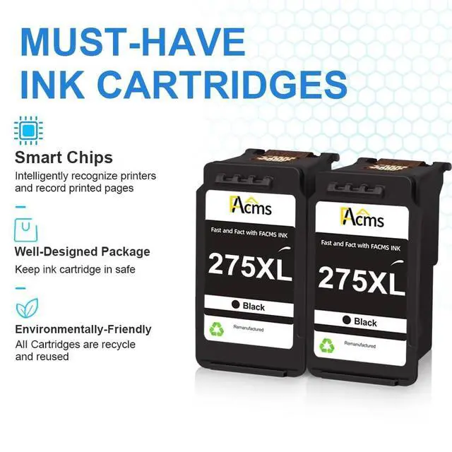 High Performance: FAcms replacement for Canon ink 275 select the best ink and the most compatible chip to ensure ink cartridge can perfect work with your printer, have ISO9001 certification.