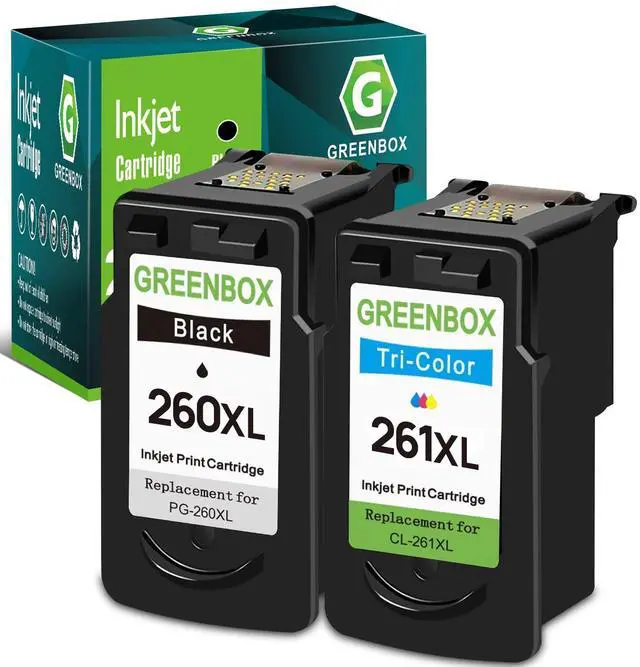 What in the box: 2 packs GREENBOX 260XL 261XL ink remanufactured for Canon ink cartridges 260 and 261 (1 Black, 1 Tri-Color) ^^