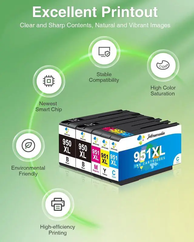 Latest Chip Version: Jettruemedia 950XL 951XL compatible ink cartridge, our cartridges provide reliable printing performance, deliver clear text and vivid images, providing seamless printing.