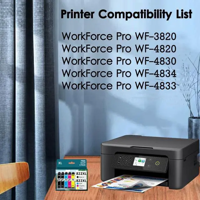 Work With: Epson WorkForce WF-3820, WF-3823, WF-4820, WF-4830, WF-4833, WF-4834 Printer ^^ High Page Yield 822XL