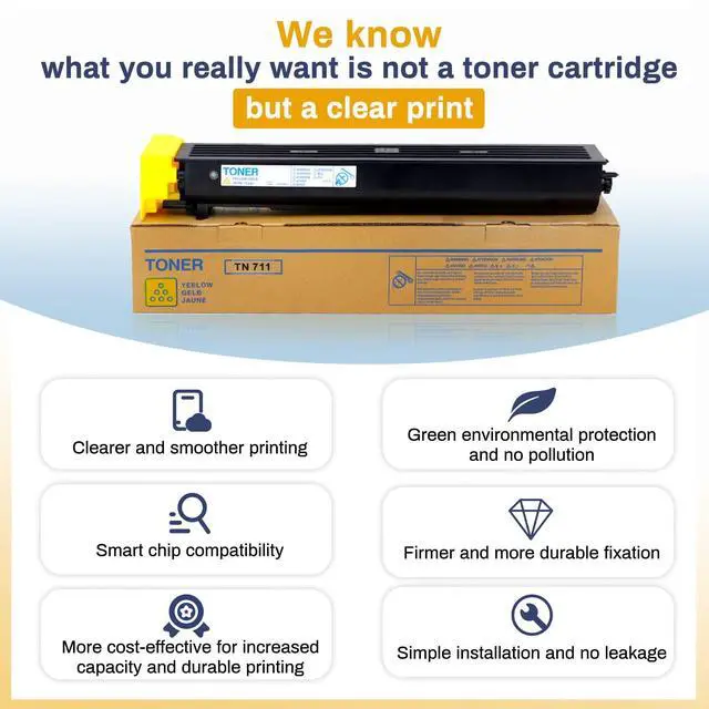 High Yield: Weight of 3.17 lbs. High-Yield to 47200 pages per cartridge(at 5% coverage on A4) ^^ ExcellentlyHigh-quality environmentally friendly toner adopts nano-scale manufacturing process, with sufficient toner, fine particles and high color reproduction ^^ Quality AssuranceCertified ISO 9001 quality assurance, ISO 14001 environmental management, RoHS Lead-Free ^^ Stable OutputFirm fixing, the output quality is the same as before, clear and sharp, waterproof and wet water does not fade, and the color is locked for a long time