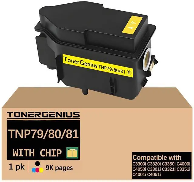 Compatible ModelsCompatible with Konica Minolta bizhub C3300i C3320i C3350i C4000i C4050i C3301i C3321i C3351i C4001i C4051i printers (replacement for TNP79 TNP80 TNP81) ^^ High Page YieldEach toner cartridge yields up to 9, 000 pages (Letter/A4 at 5% coverage) ^^ Package Contents1-pack universal TNP79/80/81 Yellow Toner Cartridge, compatible with Konica Minolta bizhub C3300i C3320i C3350i C4000i C4050i C3301i C3321i C3351i C4001i C4051i. Equipped with an intelligent tracking chip. Comes in factory-sealed packaging ^^ Quality AssuranceAll TNP79 TNP80 TNP81 toner cartridges compatible with Konica Minolta bizhub C3300i C3320i C3350i C4000i C4050i C3301i C3321i C3351i C4001i C4051i printers come with 24-month after-sales support ^^ With ChipThe universal TNP79 TNP80 TNP81 replacement toner cartridge comes pre-installed with a compatible chip for Konica Minolta bizhub C3300i C3320i C3350i C4000i C4050i C3301i C3321i C3351i C4001i C4051i models.