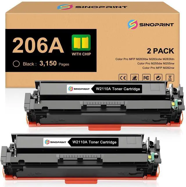 Package Included Items: SINOPRINT 206A black toner cartridges (with chip) replacement for HP 206a 206x black toner cartridges. ( W2110A black x 2) ^^