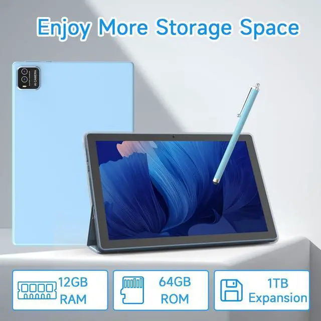 6000mAh large battery, long-lasting endurance Say goodbye to frequent charging! Ultra long battery life supports all day use, worry free for business trips and outdoor entertainment. 5G+Wi Fi 6, high-speed networking Dual mode high-speed network, zero latency for downloading, watching movies, and playing games, allowing you to enjoy high-speed network anytime, anywhere. Large storage+expandable, massive space Is 64GB of built-in storage not enough? Supports SD card expansion up to 1TB, allowing for easy storage of photos, movies, and documents! Value package, buy and use now Tableta comes with a high-end protective case and stylus, anti drop and anti scratch, more accurate writing and painting, enjoy a complete experience right out of the box! Whether it's work, study, or entertainment, this tablet can meet your needs!