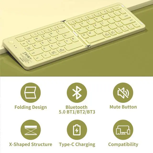 Bluetooth Foldable Keyboard Mini pc keyboard perfect for travel and business trips. Experience the convenience of a portable folding keyboard, enabling you to work effectively anywhere! No tangled cables, just a stable and reliable connection. Compact when folded, it unfolds to a standard-size keyboard with comfortable keys. Compatible with a wide range of devices, it turns mobile devices into mini workstations.