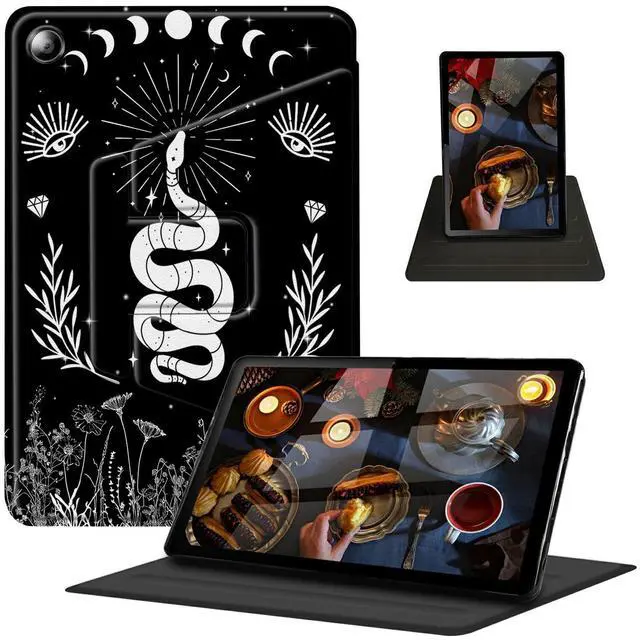 Features: Lightweight portable for working/ traveling Available in a variety of bright and fun colors Premium materials PU leather + stretch esistant TPU 360 Degree Swivel Stand multi-angles viewing adjustable Two anti-slip grooves support 3 flexible viewing positions Quick access to all important features such as buttons, camera, speaker, and ports. Auto Wake/Sleep Boosting your tablet productivity of battery endurance and power saving.
