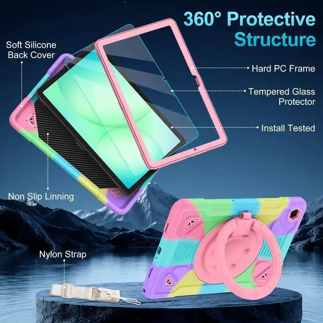 Compatibility: Exclusively Designed for Samsung Galaxy Tab A11+ Plus/A9+ 11-Inch 2025/2023 tablet(SM-X230/X235/X236B/SM-X210/X216/X218). NOT fit for other Samsung tablet model. (With Screen Protector) ^^ For Tab A11+ CaseThis Case for Samsung Galaxy A11 Plus/A9 Plus tablet case Premium Soft silicone rubber and hybrid hard PC + front hard PC bumper 2 in 1 design easier to install and remove than three layer with stands daily drop, bump and shock with four corner cushioning for protection, suitable samsung galaxy tab a9+ case for kids and adults. ^^ 360Rotating Stand & 180FoldsGalaxy A11Plus/A9 Plus case with a 360rotating handle that also folds 180to give you multiple angles between 25-85 degrees of horizontal or vertical orientation, Also offers hand hold and hung on wall using by handle function, allow you use or carry much easier, perfect for a variety of people and occasions. ^^ Protective 9H Tempered Glass Screen ProtectorCase for Samsung Galaxy Tab A11+/A9+ 11 inch with scratch-resistant tempered glass screen protector, it offers exceptional sensitivity and transparency, Tempered glass tablet protectors offer superior durability scratch resistance, and a smoother touch experience, Not only shock/-proof/long-lasting but also comfortable holding feel.