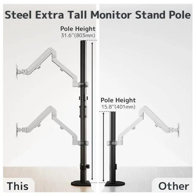 Product Introduction: This monitor stand pole for monitor arms is recommended for those who want to install their existing monitor arm at a higher position (Only the pole is available for sale) ^^