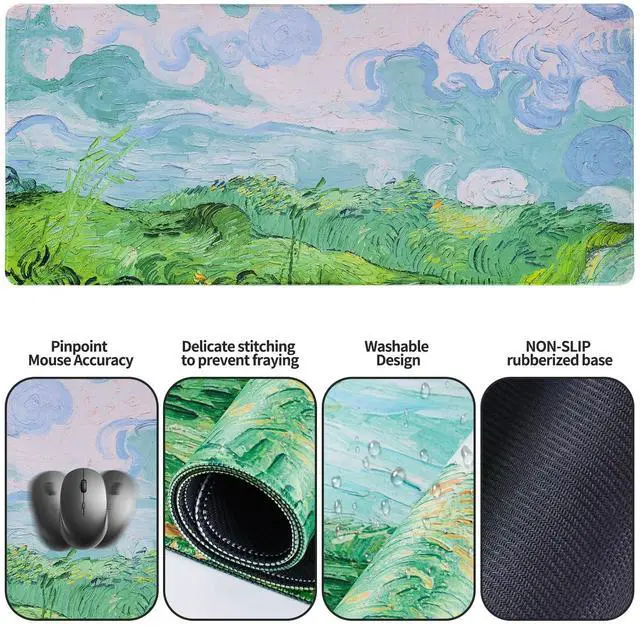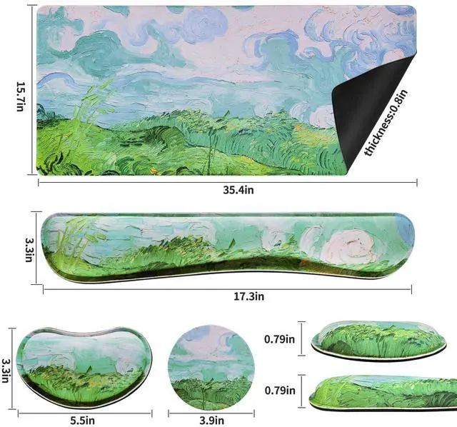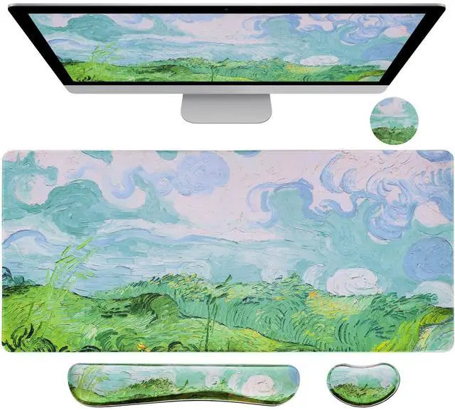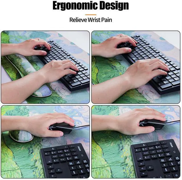 4-in-1 Mouse Pad SetThe large desk pad sets includes desktop pad, keyboard wrist rest, mouse wrist rest, and coaster. Cost-effective price, unique appearance, is the ideal accessory for the desk. ^^ Anti-slip Bottom DesignThe bottom of the desk mat and wrist support is made of special natural rubber material, which can be firmly fixed on the desktop to prevent sliding, so that you can easily move and accurately position the mouse at work or play. ^^ Quality materialThe mouse pad is large enough to accommodate your mouse and keyboard.