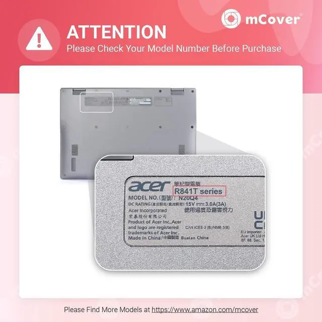 NOTE: Before placing order, PLEASE make sure to verify your laptop model number as this case is MODEL specific and NOT interchangeable. ^^ NOT fitting other Acer Chromebook laptops. NOT compatible with ANY other laptops as well. ^^ Made of high-quality translucent polycarbonate material which is shatter-proof and will protect your 2021~2022 13.3" Acer Chromebook Enterprise Spin 513 R841T series Convertible Notebook Computer all around ^^ Designed to perfectly fit the 2021~2022 13.3" Acer Chromebook Enterprise Spin 513 R841T series Convertible Notebook Computer with dimension of 12.2 x 8.2 x 0.61 inch ( 30.99 x 20.83 x 1.55 cm ) ^^ 2-piece light-weight ( 8.1 oz or 230 g ) shell easily snaps on and off.