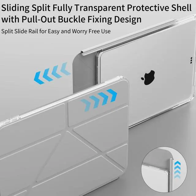 Stand Design: iPad A16 protective case adopts a removable three-fold sliding stand, with slide rails designed on both the vertical and horizontal sides, which can enjoy a variety of standing positions. The transparent back shell can be removed and used alone to show the original beauty of iPad ^^ Clever