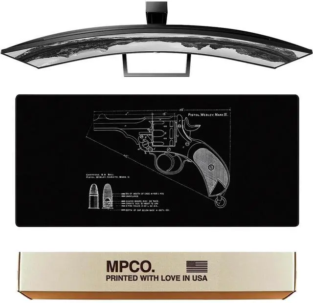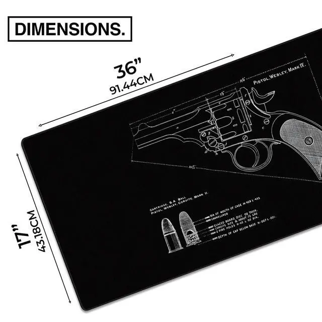 MPCO. Blueprints Large Gaming Desk Pad - 36" x 17" Duraglyde Fabric Pistol Webly Mark IV Black Desk Mats - Non-Slip, Washable, Smooth Glide for Precision Gaming & Work