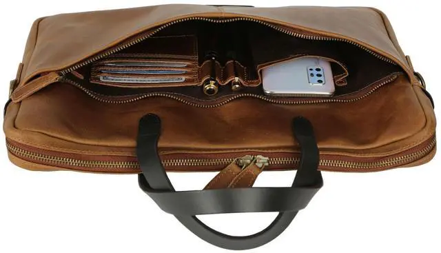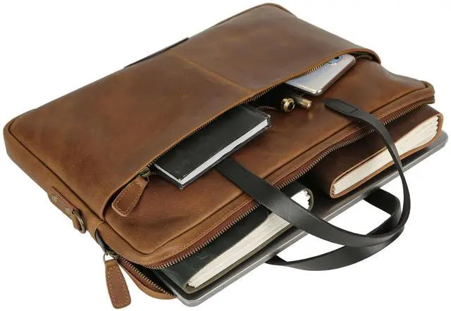 DescriptionUpgrade your everyday carry with the KomalC Leather Laptop Sleeve the perfect fusion of style, utility, and durability. Crafted from premium full-grain leather, this slim laptop bag is designed for professionals, travelers, and students who want more than just a sleeve. Tailored to fit 13-inch, 14-inch, and 14.5 -inch laptops, the spacious main compartment safeguards your device while leaving room for notebooks and essentials. Inside, youll find an organized layoutincluding a card holder, pen loops, and a phone pocketso you can carry your office wherever you go.