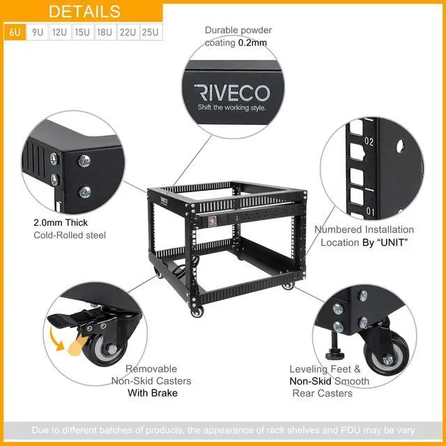 SET: In this Combo suit, you will get a standard RIVECO 6U portable rolling network rack, with all relevant assembly screws & nuts, leveling feet and casters and a qualified PDU for daily usage ^^