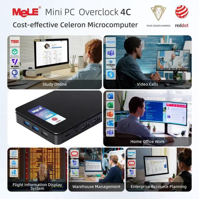 ^^ Core i3 N300 Processor & Unstoppable Performance -- MeLE New released Overclock 4C micro pc is powered by faster N300 processor (up to 3.8GH z), 8 cores, 8 threads, 6MB L3 Smart Cache with TDP 7W. N300 mini pc delivers more than 36% higher performance than N100 CPU, with lower power consumption, and it can support 7/24 stable performance. Ideal for business, industrial, office, education and entertainment. ^^ Ultra Small Size -- This small form factor pc dimensions of 7.0 x 3.7 x 0.8 inches, 0.7LB, design in a slim and compact shape.