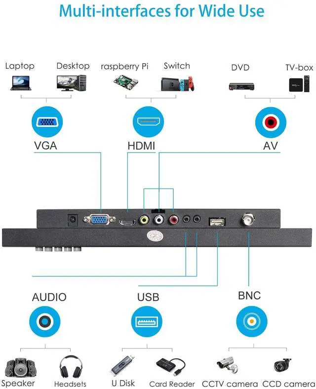^^ Versatile Video Input: Connect effortlessly with HDMI, VGA, BNC, AV, USB, and audio inputs. This versatile monitor is compatible with Raspberry Pi, DSLR cameras, PCs, DVD players, TV boxes, gaming consoles, and more. Use it as a secondary display or even as a small TV by connecting a TV box. ^^ Rugged Metal Shell &
