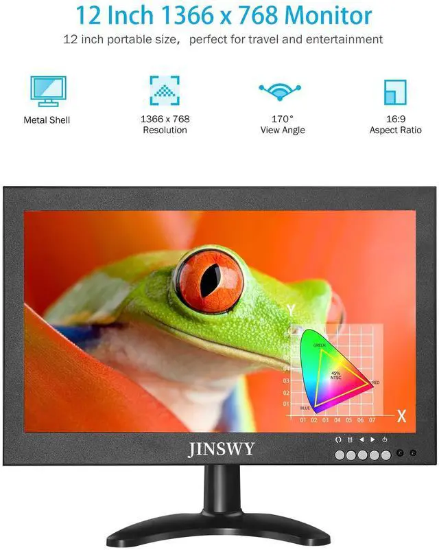 Immersive Visual Experience: Experience vibrant visuals with the JINSWY 12-inch HDMI monitor featuring an IPS LED screen with a crisp 1280x800 resolution. The IPS panel ensures a wide 170 viewing angle and 450 cd/m brightness for clear and vivid display. Enjoy a 16:9 aspect ratio and a high 800:1 contrast ratio, delivering exceptional picture quality.