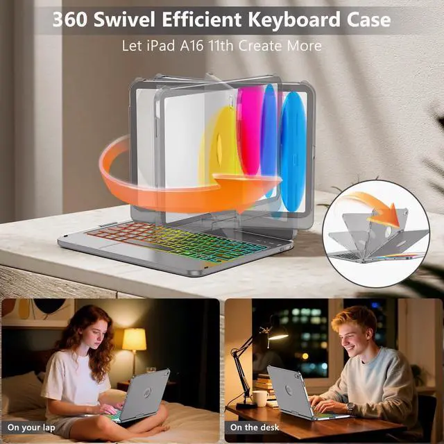 Generation: With this keyboard case for ipad 10th Generation, it only takes a few seconds to change for iPad to Laptop, you can watch your favorite movies or read new books and enjoy tablet in comfort ^^ 7 Colors Backlit keyboard case for iPad 10th