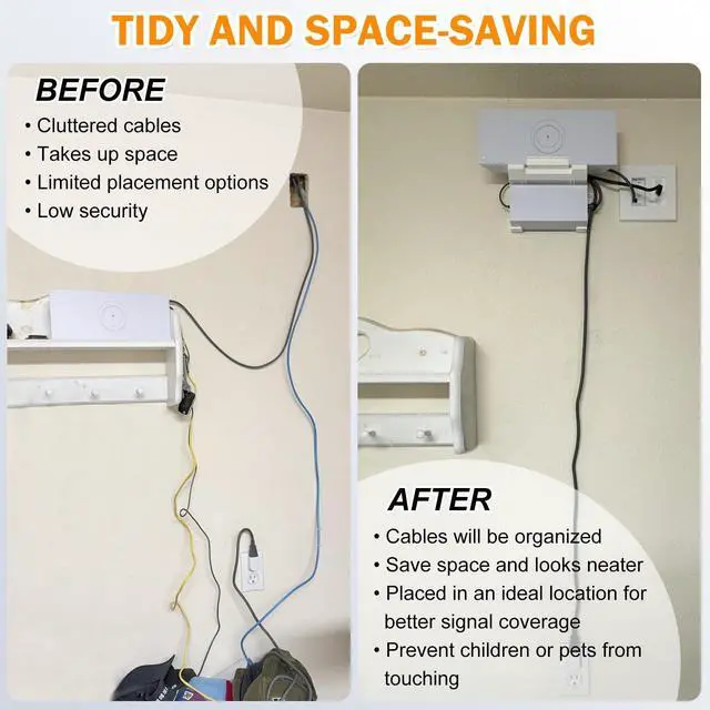 ^^ Perfect Fit: Our wall mount bracket is specifically designed for the Gen 3 mesh router and V3 power supply ethernet adapter, ensuring a snug fit that enhances the stability and connectivity of your internet kit.