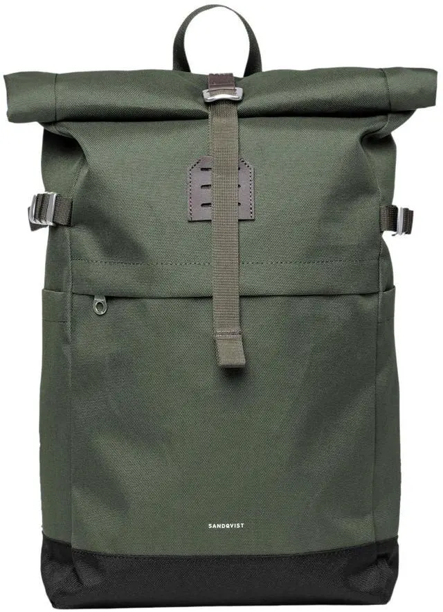 Sandqvist Men's Icon Medium Rolltop Backpack, Dawn Green With Dark Brown, One Size