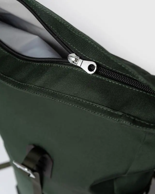 • Rolltop with hook-and eye strap and zip closures, Hidden zip front pocket, Laptop pocket at back with zip closure