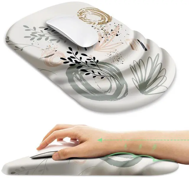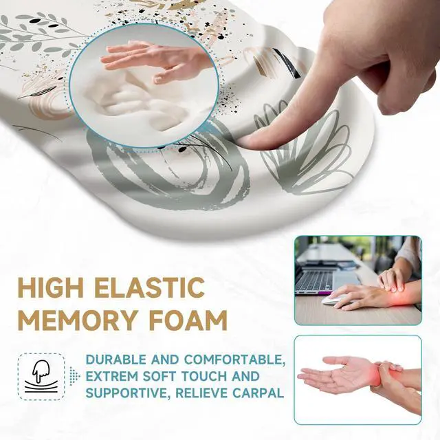 Ergonomic Mouse Pad with Wrist Rest Support,Non-Slip PU Base,Massage for Carpal Tunnel Pain Relief,Memory Foam Mousepad for Home,Office,WorkBoho Leaves