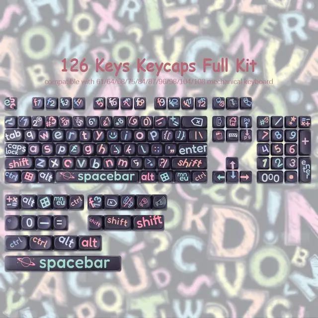 ^^ Widely Compatibility: This keyboard keycap set consists of 126 keycaps, including 104 standard keys and 28 modifiers keys, compatible with 61/64/68/84/87/96/98/100/104/108 mechanical/magnetic keyboards ^^