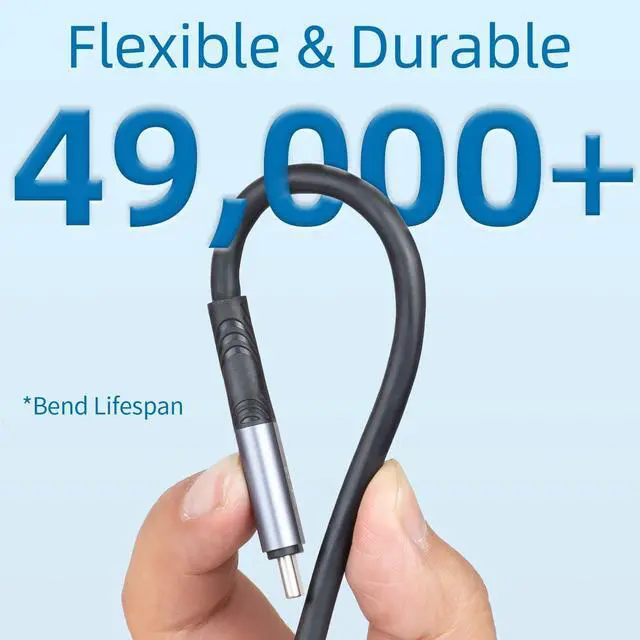 ^^ 10X More Durable: High quality jacket with 49, 000+ bend lifespan. Flexible and durable. USB C 240W for Thunderbolt 4 cable has a quadruple shielded and tinplate can extremely resistant with EMI. Zinc Alloy shell to effectively maximizes heat dissipation. Tested plugging and unplugging over 30, 000+.