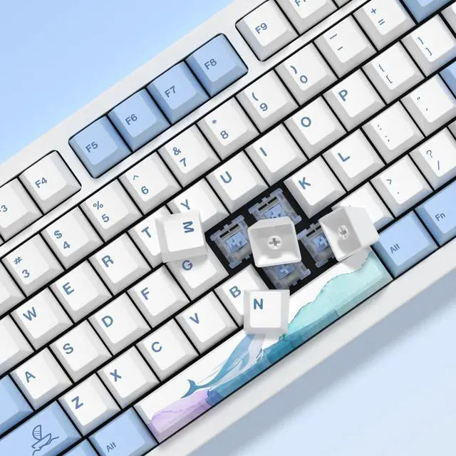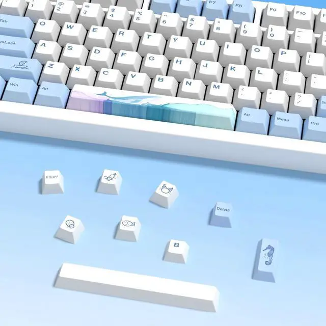 KBDiy Ocean Whale Cherry Profile-Cherry Profile keycaps have a trapezoidal design with R1-R4 layout with different height and angle slope, which is ergonomic and makes typing easier ^^ Accessories Included-This keyboard keycap set consists of 143, Keycaps do not include the keyboard. The keyboard in the picture is for display purposes only.