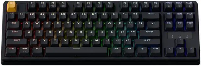 Layout: The J4 comes with a Windows layout and two blank layers. macOS users can manually remap keys and assign one layer to a Mac layout via the Launcher app for full macOS compatibility ^^ Doubleshot PBT Shine-Through Keycaps & Per-Key RGB: Thick 1.5 mm PBT keycaps resist oil and shine, while translucent doubleshot molding amplifies 16.8M -color RGB effects (8 preset modes + custom gradients). Perfect for gaming setups and design studios ^^ TKL Layout of 87 Keys, Compact