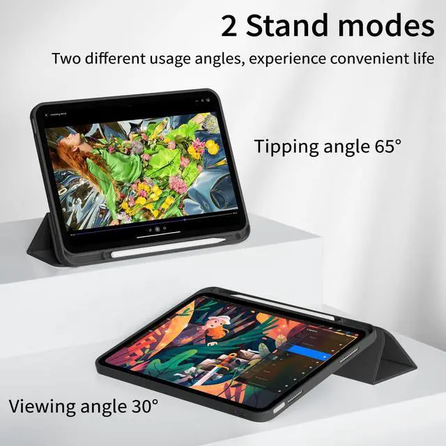 Different Viewing Angles: Trifold stand design with dual standing provide two positions for comfortable view