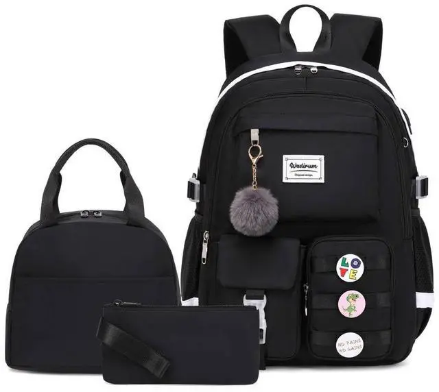 Made of high-quality waterproof polyester material, smooth and durable zipper and durable nylon lining. Zippered main compartment opens wide and flat for quick access to your gear. This backpack is durable and fashion. ^^ Organize study items or weekend accessories in this convenient backpack. One large main compartment offers ample room to fit clothes, towels, a laptop or books while a front utility pocket provides space for items such as pens, keys, pencils, and phone chargers. And two side pockets for a bottle, umbrella, or other items.