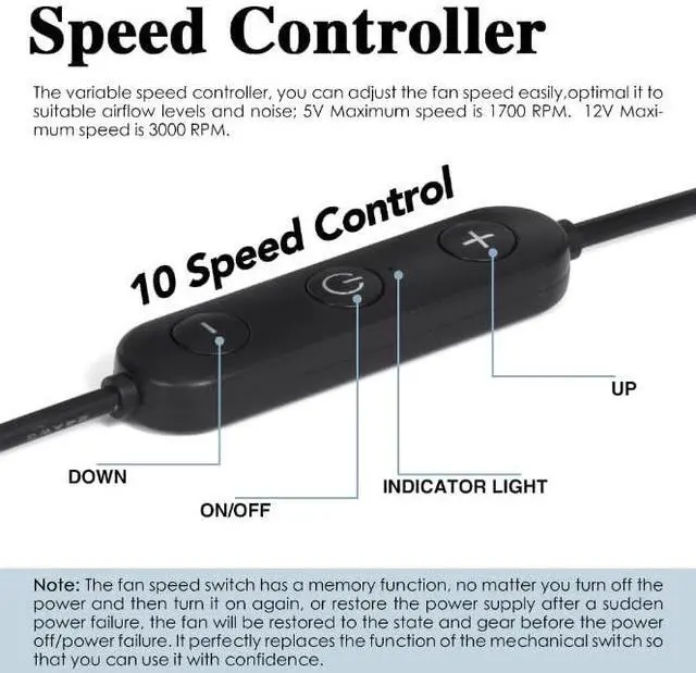 ^^ 10 Speed: Take control of the airflow level with our specially designed speed controller. With 10 adjustable speeds, you can easily customize the cooling intensity to meet your specific needs. Whether you require a gentle breeze for a subtle cooling effect or a stronger airflow for more demanding applications, this fan has you covered.