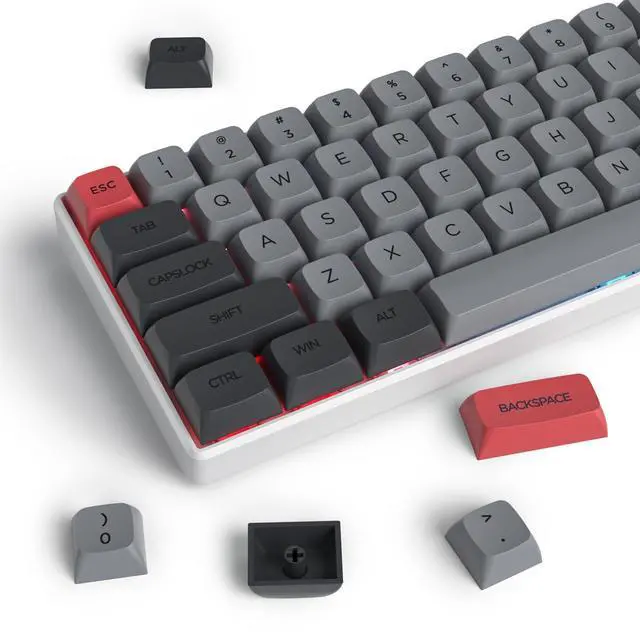 Keyboard ^^ Dye-Sub: contains a large number of personalized supplementary keys and keycaps with patterns. You can DIY your own style keyboard according to your preferences ^^ Only key cap set1*134 Grey red keycapsnot keyboardThis set of keycaps is without backlight