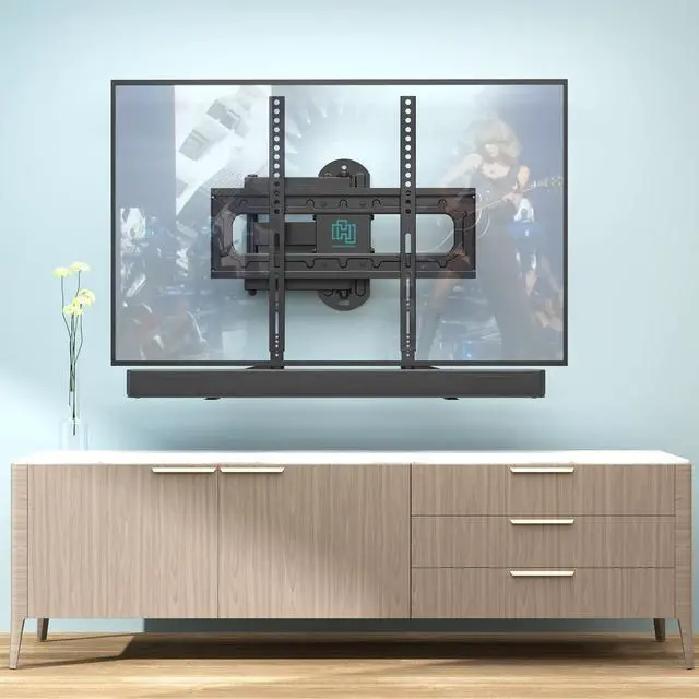 Universal CompatibilityThe HCMOUNTING soundbar mount supports soundbars up to 20 lbs (9 kg) and is compatible with popular brands like Samsung, Sony, Vizio, Bose, and Yamaha. It fits TVs with VESA patterns from 75x75mm to 600x400mm and works with fixed, tilt, and full-motion wall mounts. ^^ Enhanced Stability with U-Shaped PaddingOur unique U-shaped padding provides additional stability when attached to the back of the soundbar mount. This innovative feature ensures a firmer, more secure hold, preventing unwanted vibrations and movement. Unlike other products, this extra layer of protection enhances the durability and reliability of your setup.