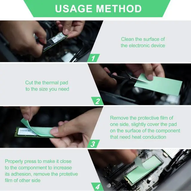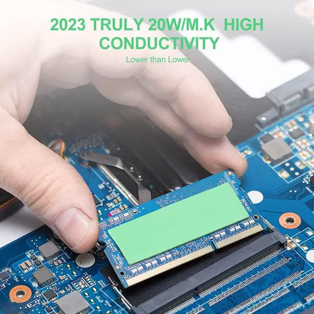 Dimensions: 100 x 50 mm. Can be easily cut off with knife or scissors to meet your need. Take good care when setting due to the unparalleled pliability ^^ Versatile application in micro-electronics, and computer components. Suit for RAM, IC, PC, PS4, PS5, LED, SSD, Laptop, and more ^^ Totally safe for human body. Non-conductive, non-toxic, odorless, anti-corrosion, wear resistant, anti-static, fire retardant and oilless ^^ Thickness available 0.5 mm, 1mm, 1.5 mm, 2mm, 2.5 mm and 3mm. Please choose the right thickness otherwise the heat conduction will not occur