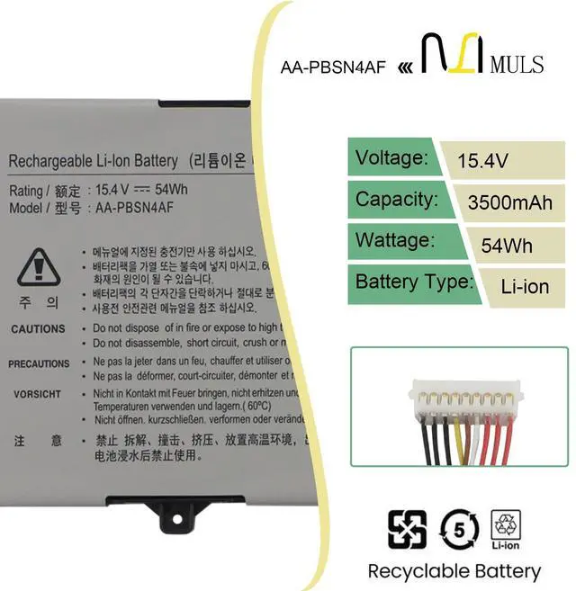 Voltage: 15.4V. 100% brand new. Up to 500 recharge cycles over the life of the battery. High-quality materials and circuit board. ^^ Replacement For LaptopFit for Samsung Notebook 9