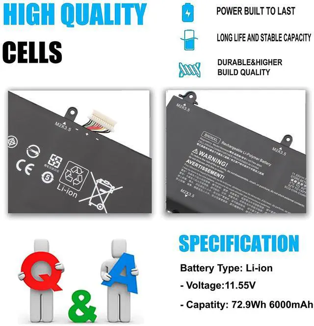 Compatible with Part Numbers: BN06XL BN06072XL HSTNN-IB9A L68299-005 L68235-1C1 ^^ Certified security- EMAKS High-quality Batteries have Multiple Safety Protections, including Short Circuit, Overheating and Overcharge Protection. Built in Smart Control Chip Conveniently offers Quicker Charging, Lower Power Consumption and Longer Discharge Time. Every one of Our Replacement Notebook Batteries Have Undergone Comprehensive Quality Testing During the Manufacturing and Assembly Process. ^^ 100% Safety Our product have passed strict intelligent detection, such as short circuit protection, over voltage protection, discharge protection, over current protection, which is very important for batteries use cycle and safety. All batteries are equipped with high quality material to ensure good performance. CE, FCC, RoHS certificated. ^^ EMAKS We are USA based Company that Wants your Repeat Business.