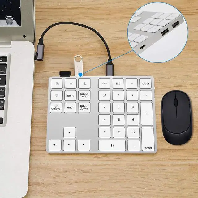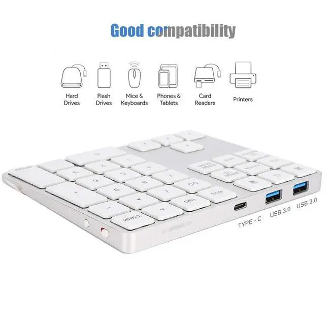 The product is made of aluminum alloy and ABS material, which is beautiful and hand feels is good. ^^ In addition to being used as a numeric keypad, it can also be used as a HUB. The two expansion interfaces are USB 3.0, which transmits 5Gbps per second and is compatible with a variety of devices. ^^ 34-key design, a good helper for number input processing. ^^ Support theoretically the maximum distance of 10 meters, more convenient and flexible to use. ^^ Type c to type c public data line USB 3.1G en2 does not recognize the direction of anti intrusion, directional accessibility to quickly read data.