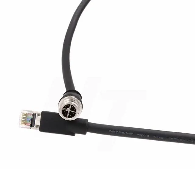 • M12 Gigabit Ethernet high-speed data transfer cable for industrial application, Cognex In-Sight IS2000 7000 sensor, Basler camera, Matrix 220 scanning system, Triton camera models, network, PoE power, robot, aviation industry, actuator, industriell Ethernet switch, machine control, automation