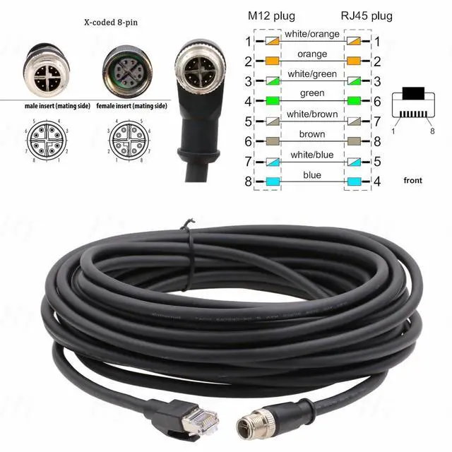 HangTon Camera Sensor Network Ethernet M12 8 Pin X Coded to RJ45 Cat 6A High Speed Gigabit Cable for Cognex Basler Industrial Application 32.8ft