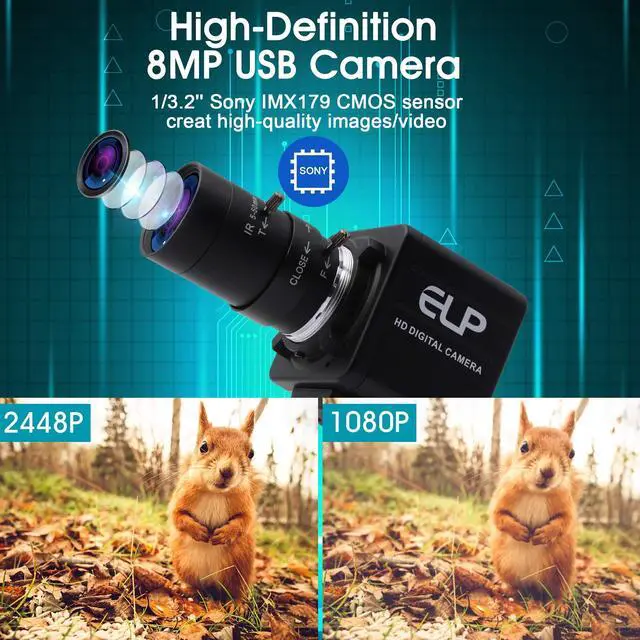 Lens USB Webcam: 8Megapixels usb webcam with 5-50mm manual varifocal lens, and aluminum mini case, they can obtain different angles of view, different sizes of images, and different scene ranges by adjusting the focal length. Manual focusing helps for Precise focusing and get the clear image accurately. Equipped with 3 meters usb cable, support otg optional. ^^ Super HD 8MP